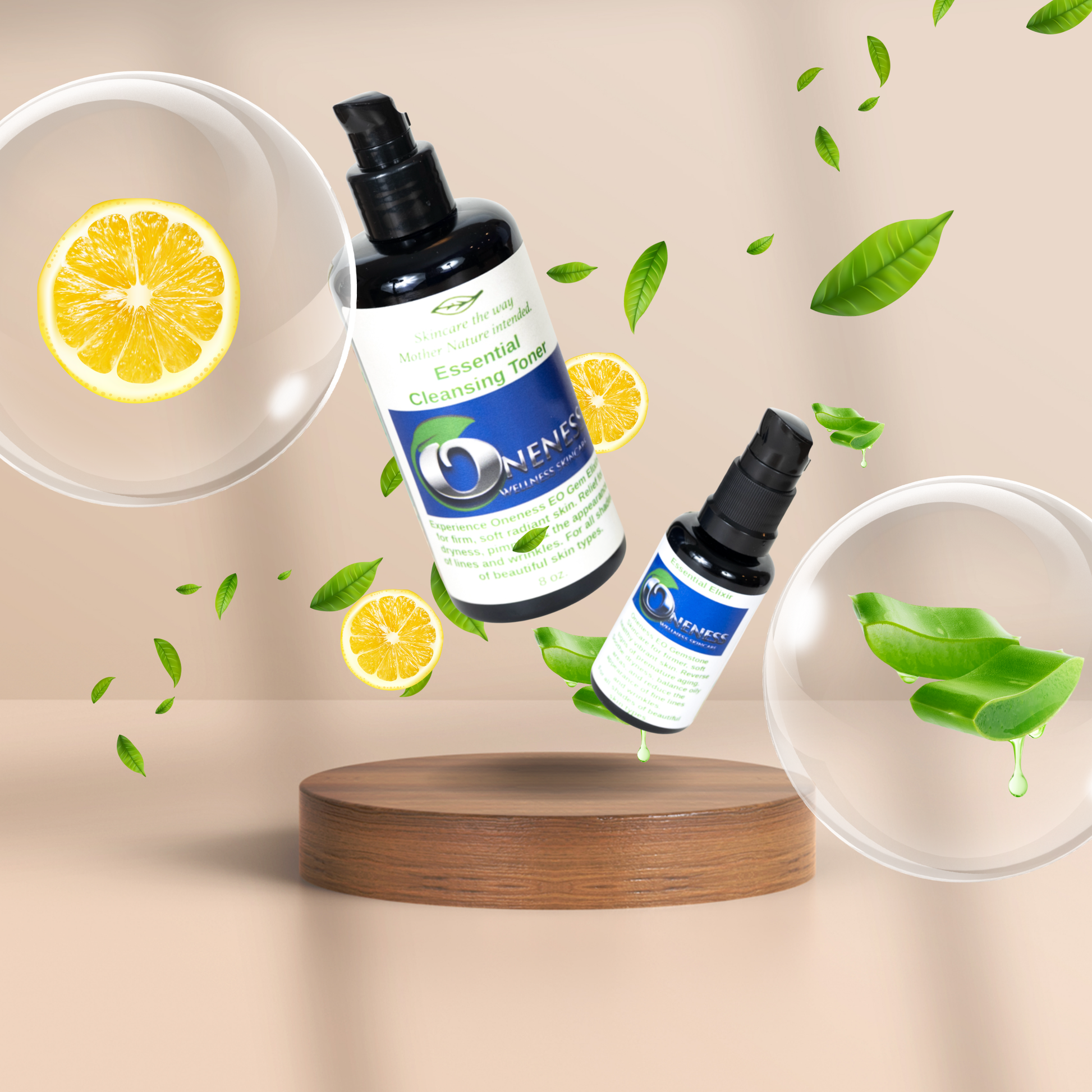 Mist the Essential Cleansing Toner onto a cotton pad or directly into your palms. Press gently into the face, inhaling deeply as you release the day. Follow with The Elixir, massaging 2–3 pumps into damp skin. Take a moment to seal in hydration and set your energetic tone for the day or to unwind in sacred stillness at night.